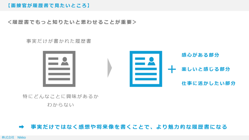 履歴書は、事実を淡々と書いている人も多いのですが、少し細かく書いても良いと思います。