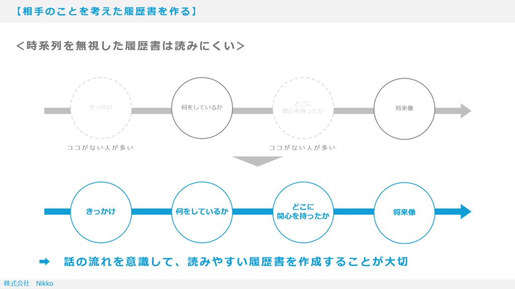 しかし、読みやすい履歴書を作成するには、時系列を整えることが必要です。