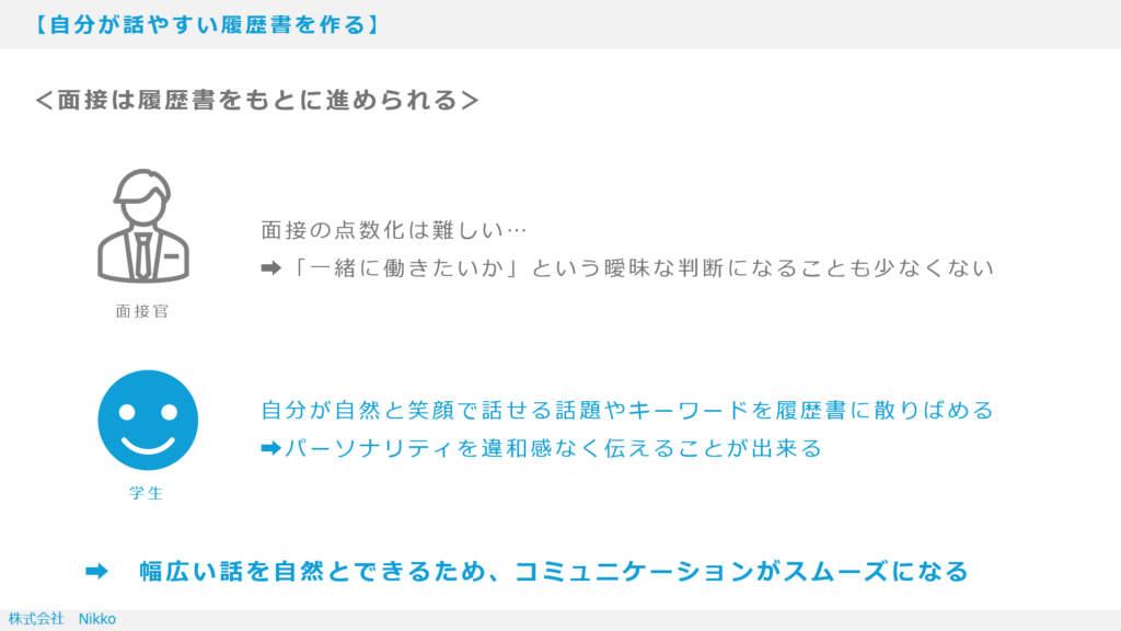 面接では、初対面の人に自分のことを短時間で伝えなければなりません。