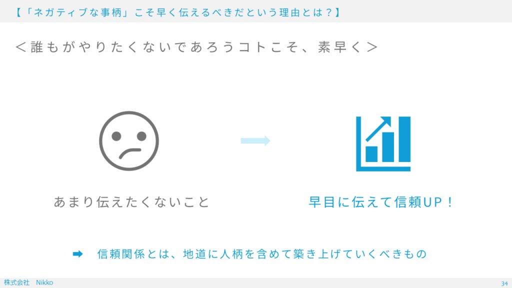相手に信用を持ってもらうには、一番有効なのは「ネガティブな情報の伝達」です。