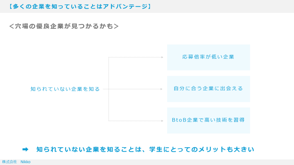 だからこそ、「知らない企業=選択肢に入らない」というのは、大きな機会損失になります。