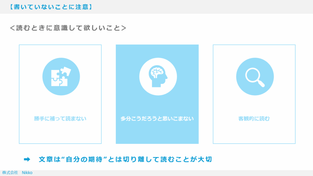 文章を読むときのポイントは「書いていないことへの注意」です。